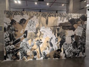 “I learned about the many nuclear disarmament protest movements and integrated some of their imagery into a site-specific installation. Every element of the work was printed, cut, and pasted on site, with visitors witnessing the process unfold. This project could not have been made in a studio — it had to be created in direct response to the bunker’s secluded atmosphere.” Neeko Paluzzi
